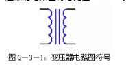 通常直流穩(wěn)壓電源使用電源變壓器來改變輸入到后級電路的電壓。電源變壓器由初級繞組、次級繞組和鐵芯組成。初級繞組用來輸入電源交流電壓,次級繞組輸出所需要的交流電壓。通俗的說,電源變壓器是一種電→磁→電轉(zhuǎn)換器件。即初級的交流電轉(zhuǎn)化成鐵芯的閉合交變磁場,磁場的磁力線切割次級線圈產(chǎn)生交變電動勢。次級接上負(fù)載時,電路閉合,次級電路有交變電流通過。變壓器的電路圖符號見圖2-3-1。